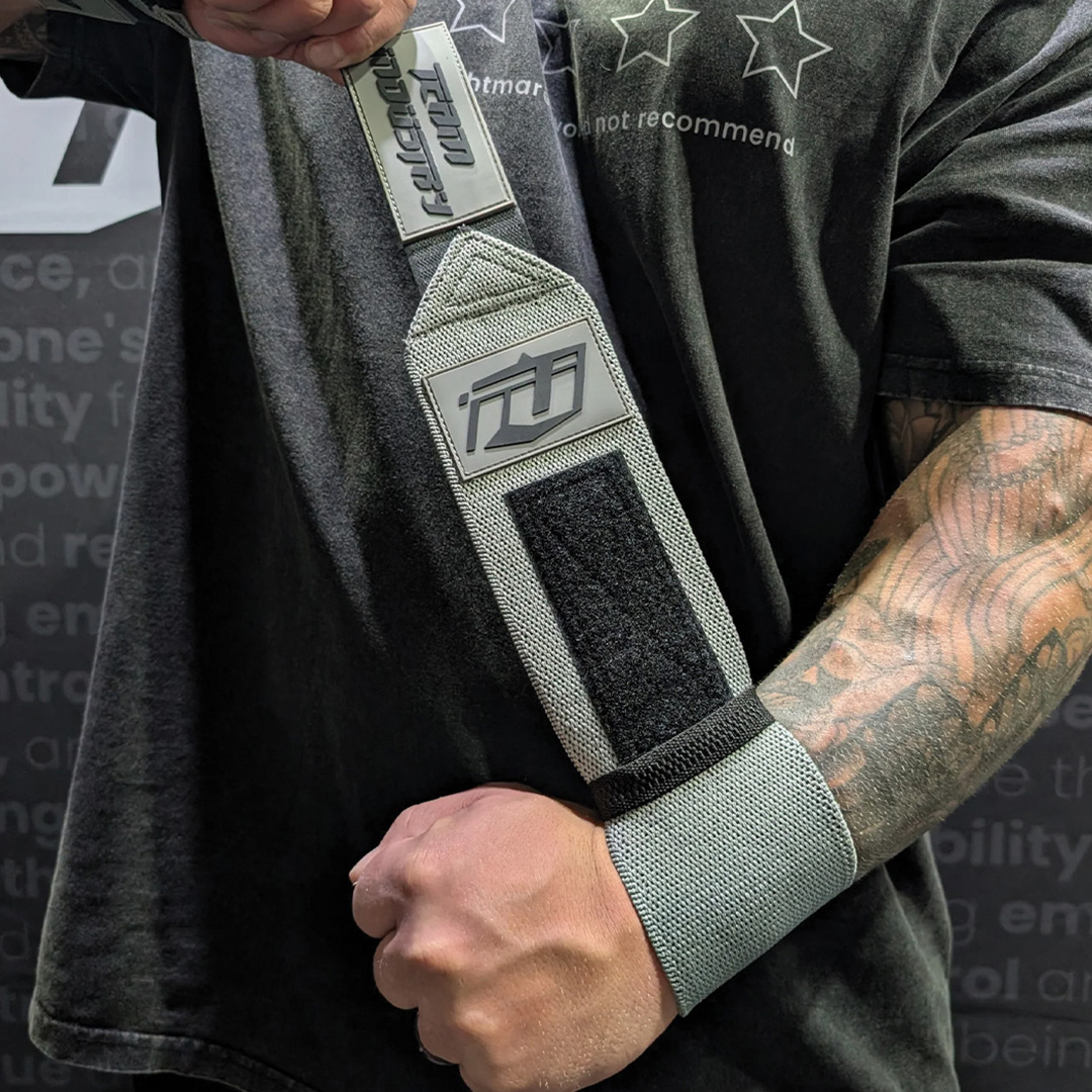 The Team Industry 16″ Wrist Wraps in Grey / Black are designed for lifters who are pushing their limits across strongman events, powerlifting movements, and heavy gym sessions. Whether you’re pressing overhead, locking out a heavy bench, or stabilising under load, these wraps provide the support you need without restricting your movement.