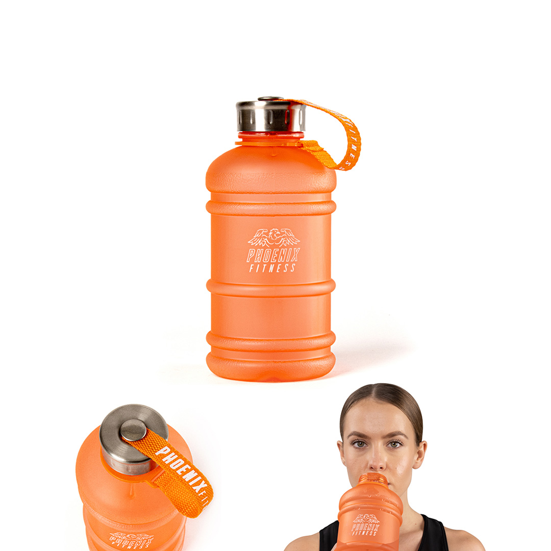 This stunning Orange 1 litre water bottle comes complete with leakproof technology. No Spill, No Leak, this Phoenix Fitness drinks water bottle comes with a secure strap for the stainless steel screw cap lid so there is no need to worry about the bottle leaking onto your clothes or belongings. With it’s ultra wide mouth, you are able to add you scoops of pre-workout, electrolytes or any other supplement you may wish to add. The ultra wide opening also makes it ideal for adding squash, or ice cubes through the summer.